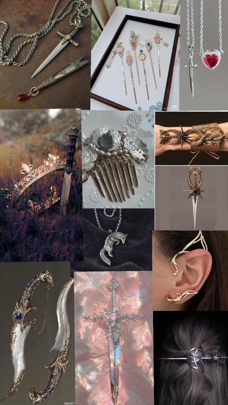 A masterpiece of lethal elegance-Pandora's jewelry collection is more than adornment; it's her hidden arsenal. Each piece, crafted by her own hands, conceals a deadly weapon, turning beauty into power and danger into art. She has a soft for daggers disguised as beautiful hair sticks.